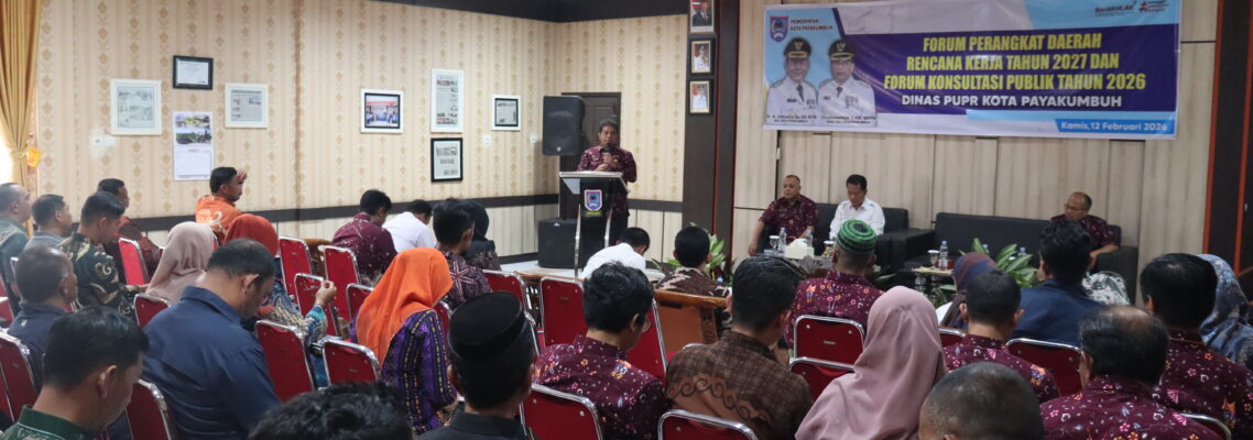 Payakumbuh – Dinas PUPR Kota Payakumbuh sukses melaksanakan Forum Perangkat Daerah Rencana Kerja Tahun 2027 sekaligus Forum Konsultasi Publik Tahun 2026 pada Kamis, 12 Februari 2026, bertempat di Aula Randang Dinas PUPR Kota Payakumbuh. Kegiatan ini secara resmi dibuka oleh… Continue Reading…